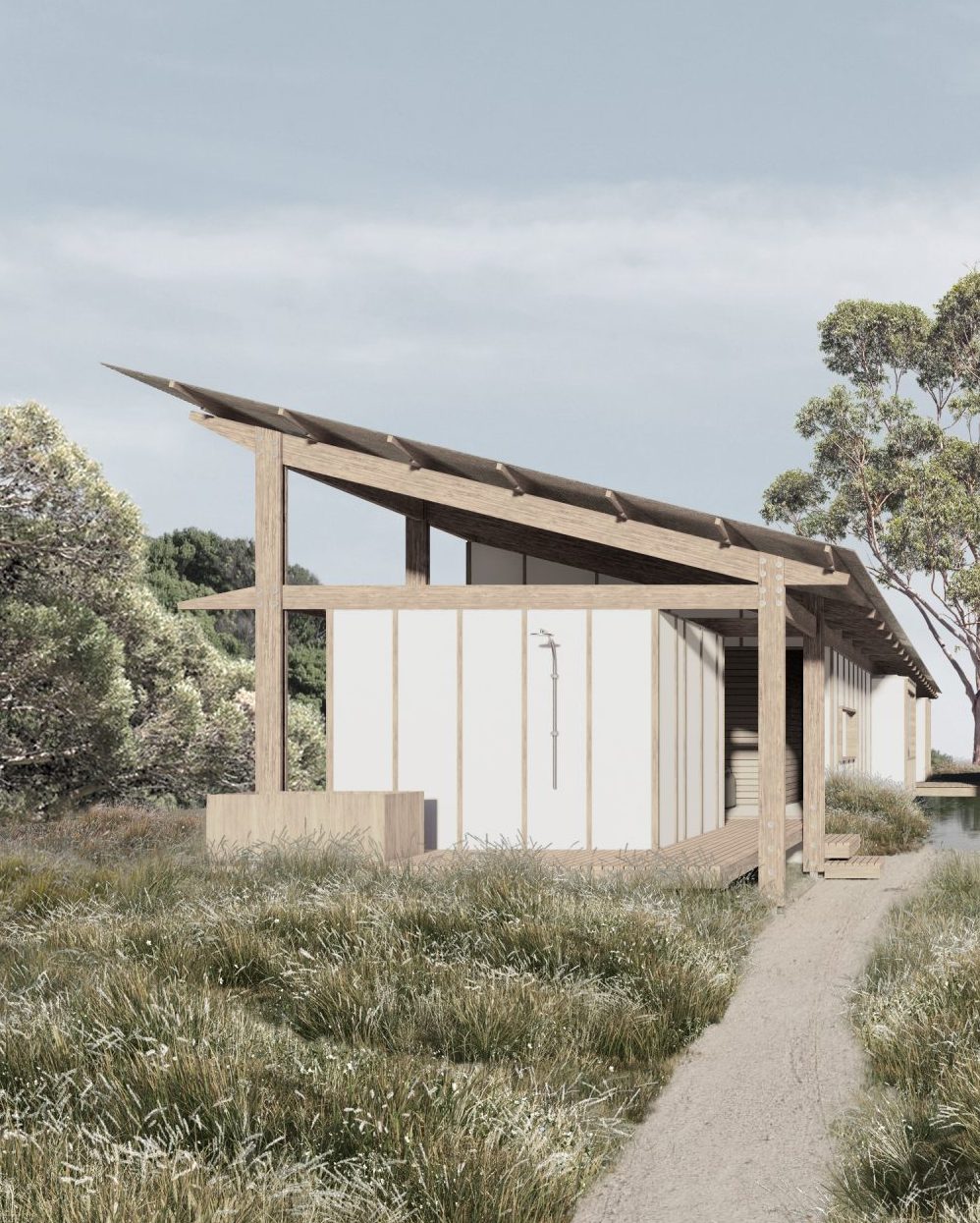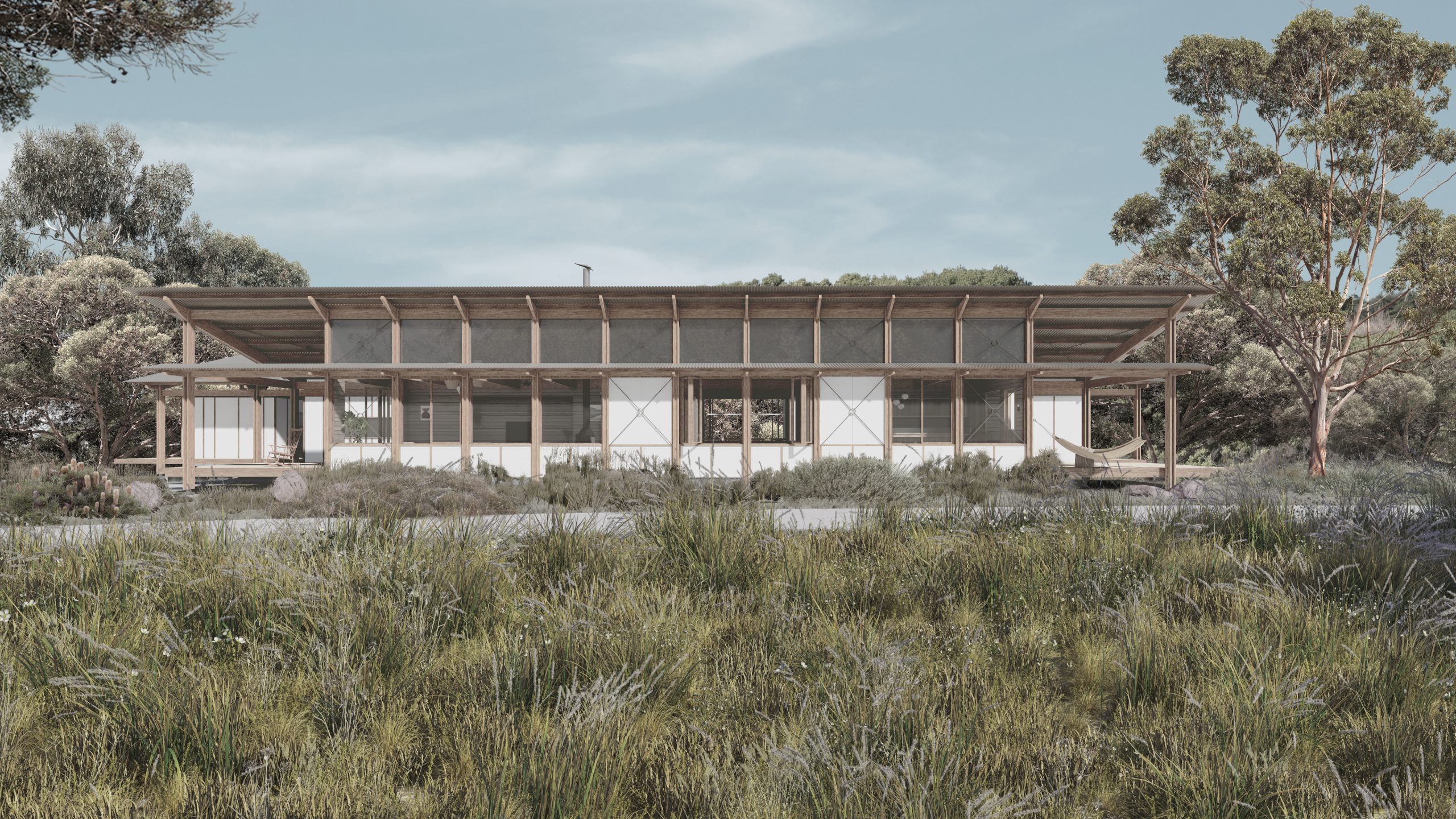 Nestled among tea trees on a rural site on Phillip Island, this four-bedroom family home is the result of a close collaboration between the architect and builder, united by a shared passion for carpentry and structural design. Inspired by nearby rural farm buildings, the single-story home embraces a refined shed-like aesthetic that celebrates simple, honest materials. The meticulously crafted exposed timber structure highlights the harmony between wood and workmanship, drawing attention to joinery, connection details, and the innovative use of timber throughout the construction.