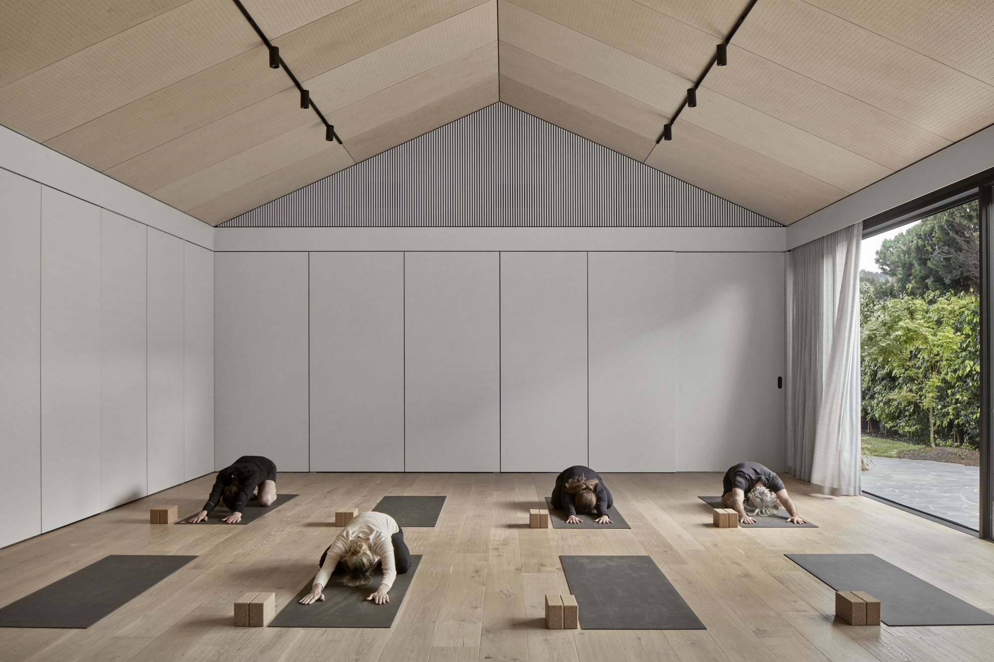 The emphasis of this new building was not on a house but a free standing, multi-functional studio space to add amenity to the client’s existing home. With a focus on yoga, there is also a dedicated gym space, workshop and billiards/kitchenette room, as well as a changing room and individual locker storage.