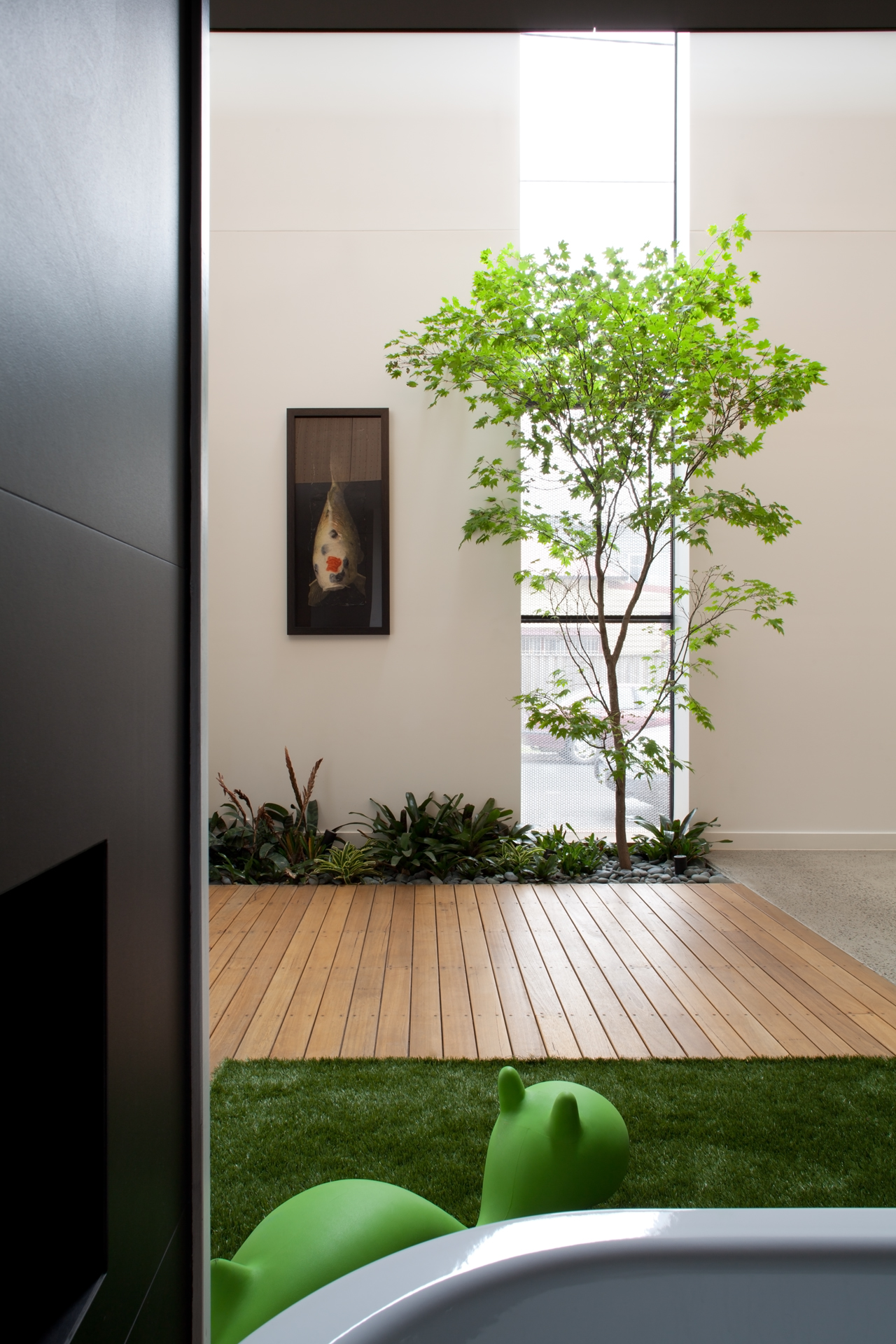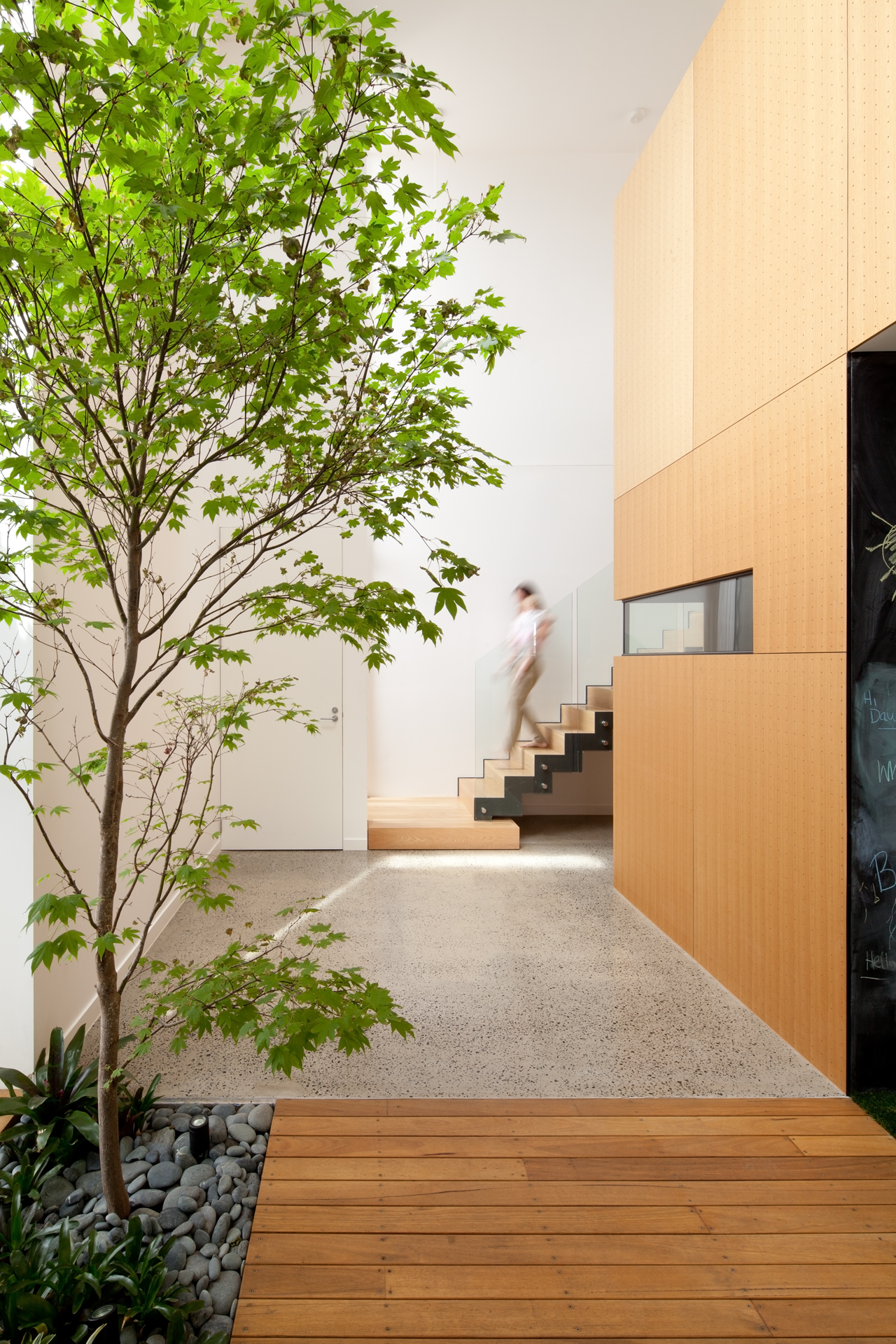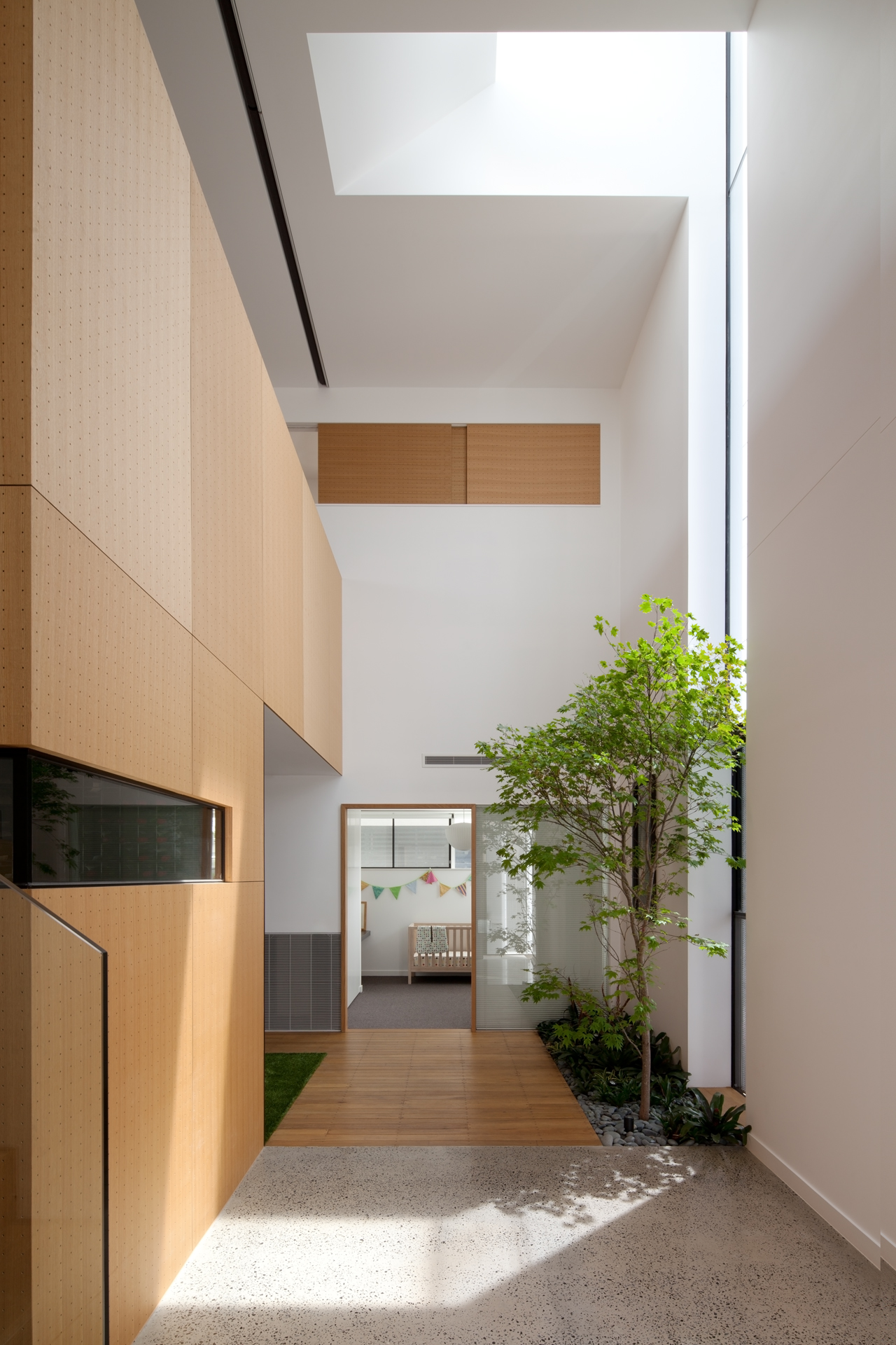 A 7m high space featuring a Japanese Maple and a full height north facing window that illuminates the interior