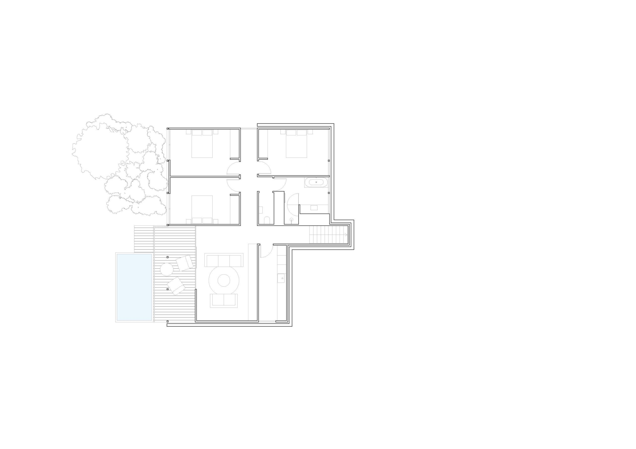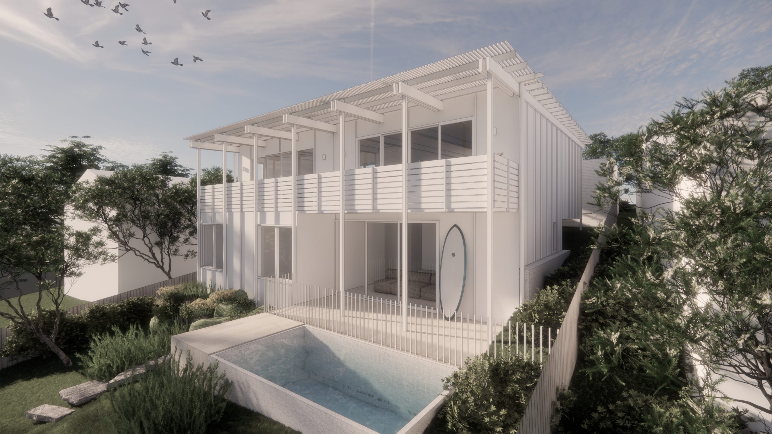 Clever programming of balconies ensures shelter from prevailing sea breezes.The simple white palette of the home sits calmly in its environment and references the relaxed character of the home.