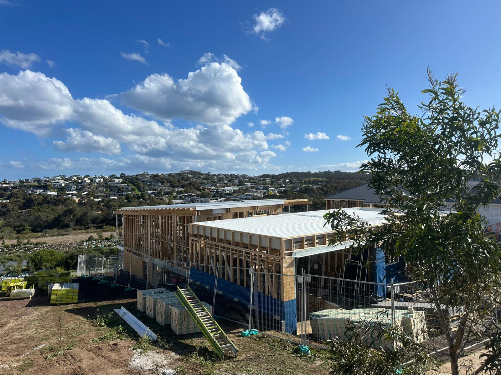 Located near the dunes of Torquay, Spring Creek house offers commanding views of the nearby rolling hills and distant water views. The arrangement of the house to the typical beach shack, with elevated verandahs, and a lightweight board and batten cladding. The solid masonry box to the front streetscape is softened with brick screens and timber elements which sits in stark contrast to the crafted beach shack beyond.
