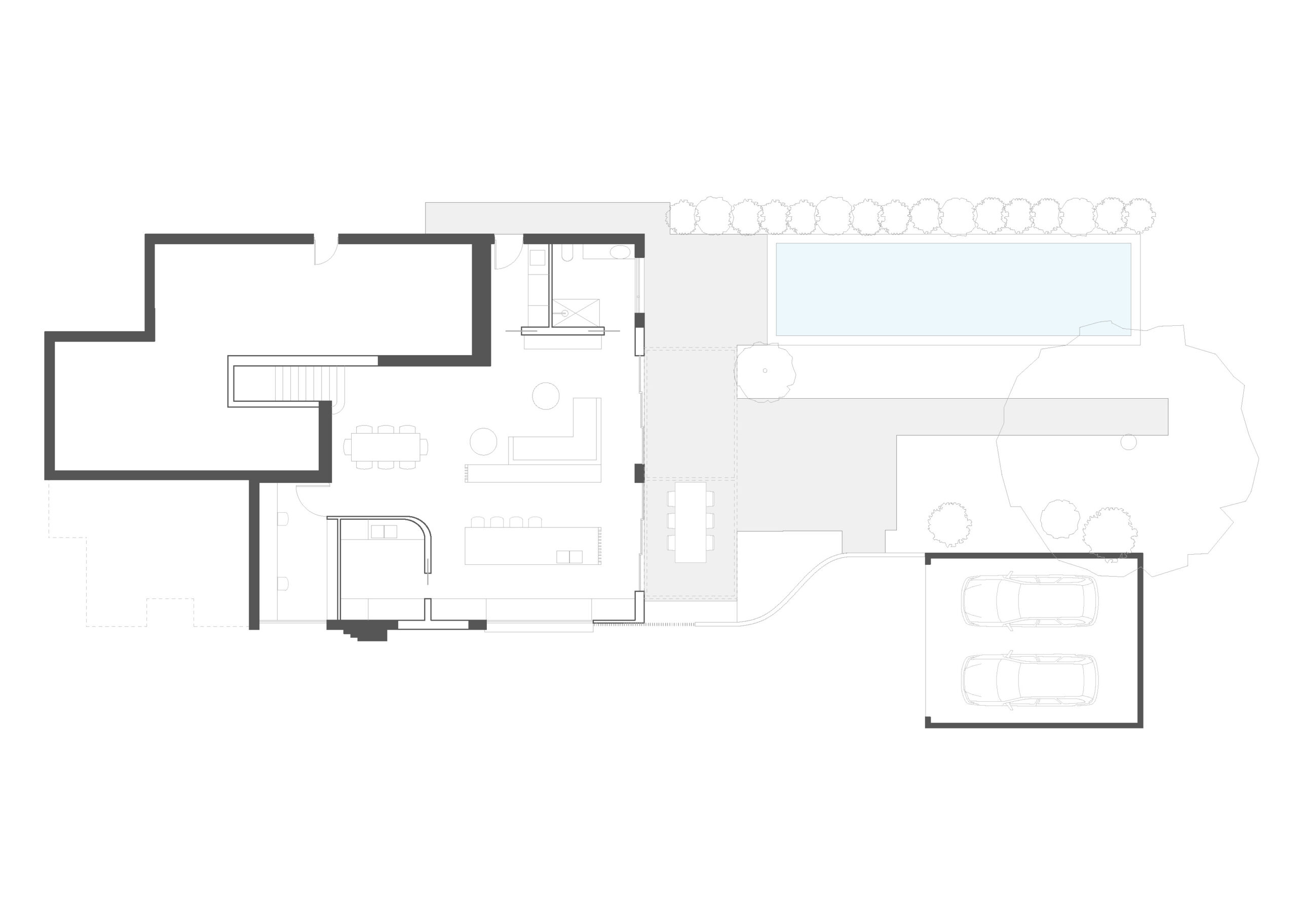 A carefully crafted, modern intervention has propelled this post-war bungalow into the contemporary world, while maintaining the original architectural features and charm. The building envelope has only increased by 25 sq/m, as the sloping site allowed a lower floor extension mostly under the original building. This created the opportunity for an open plan kitchen living area that flows seamlessly to an outdoor entertainment terrace and garden.